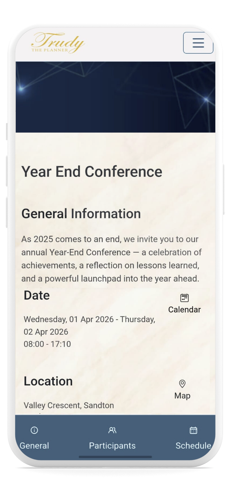 Helps everyone stay on schedule by showing a live countdown to key moments like session starts, activations, or keynote speeches.